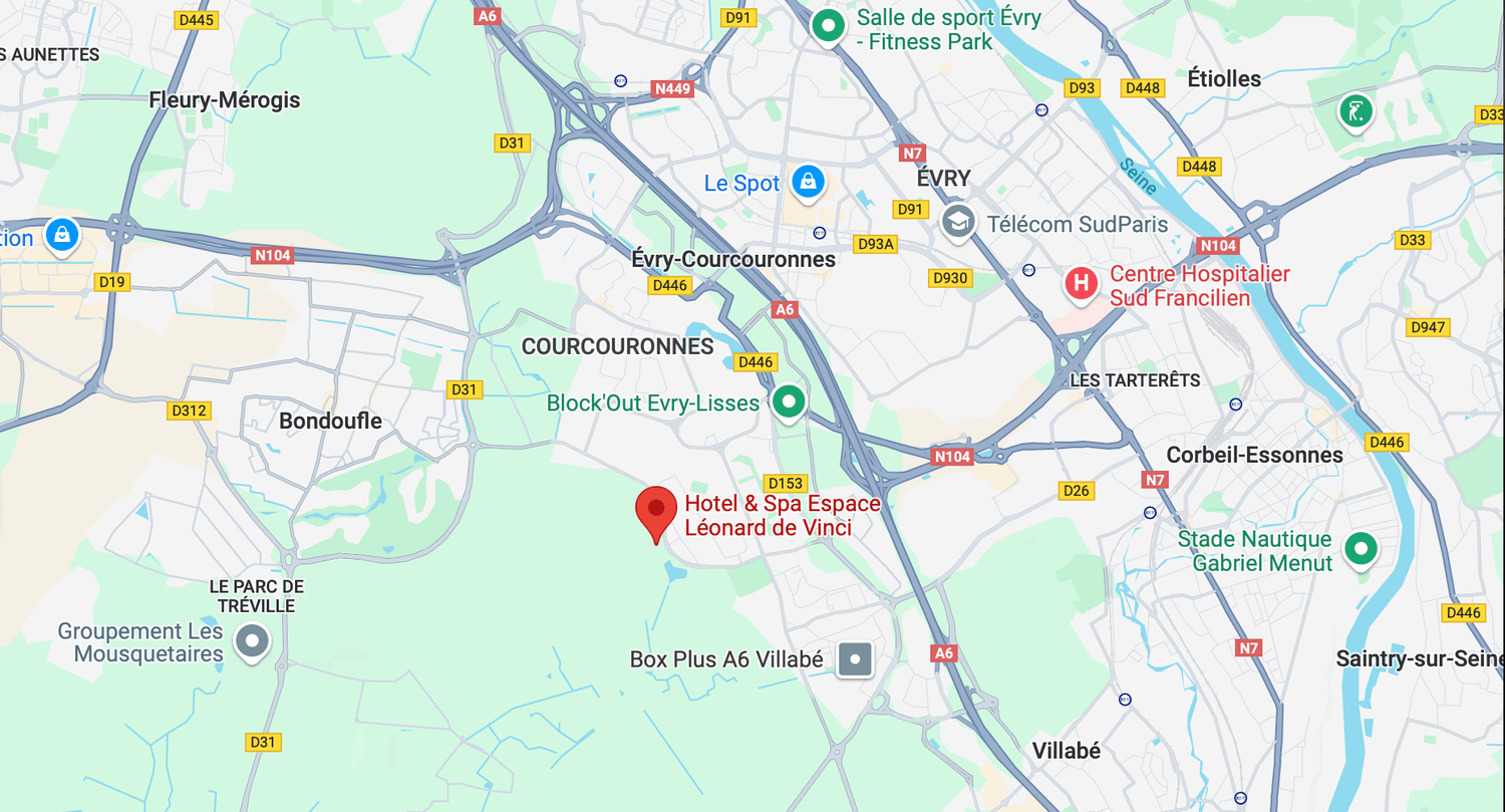 Accès en RER D jusqu’à la gare d’Evry-Courcouronnes et en Bus avec les lignes 416 (Arrêt Léonard de Vinci) et 405 (Arrêt Les Malines).